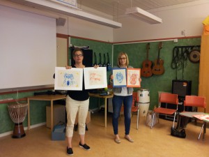 Le tissage était l’autre tâche donnée par la Suède. Nous avons décidé de faire varier les supports, chaque groupe d’élèves a donc travaillé sur un cadre de tissage différent